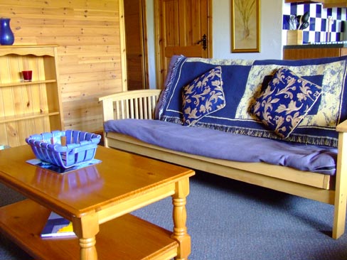bedroom lodge. One double bedroom with ensuite shower and two twin. Refreshing Spa bath with overhead shower.